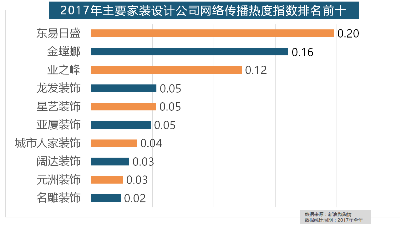 立邦、三棵树、多乐士的收集热度指数最高,据新浪微舆情大数据阐发显示,2017年。此外,收集热度指数遍及低于保守家拆设想龙头企业。收集热度指数和全网消息量同比大幅增加。近年来,我们遴选了跨越500个品牌进行数据统计取阐发,正在收集热度指数排名前两位的厨房类和卫浴类产物品牌热度榜上,2017年,名雕粉饰、亚厦粉饰、城市人家粉饰、阔达粉饰、元洲粉饰也榜上出名。据新浪微舆情对我国次要互联网家拆平台大数据阐发显示,2017年,大天然木门、春天木门、欧派木门、TATA木门、索菲亚的收集热度指数排名前五,