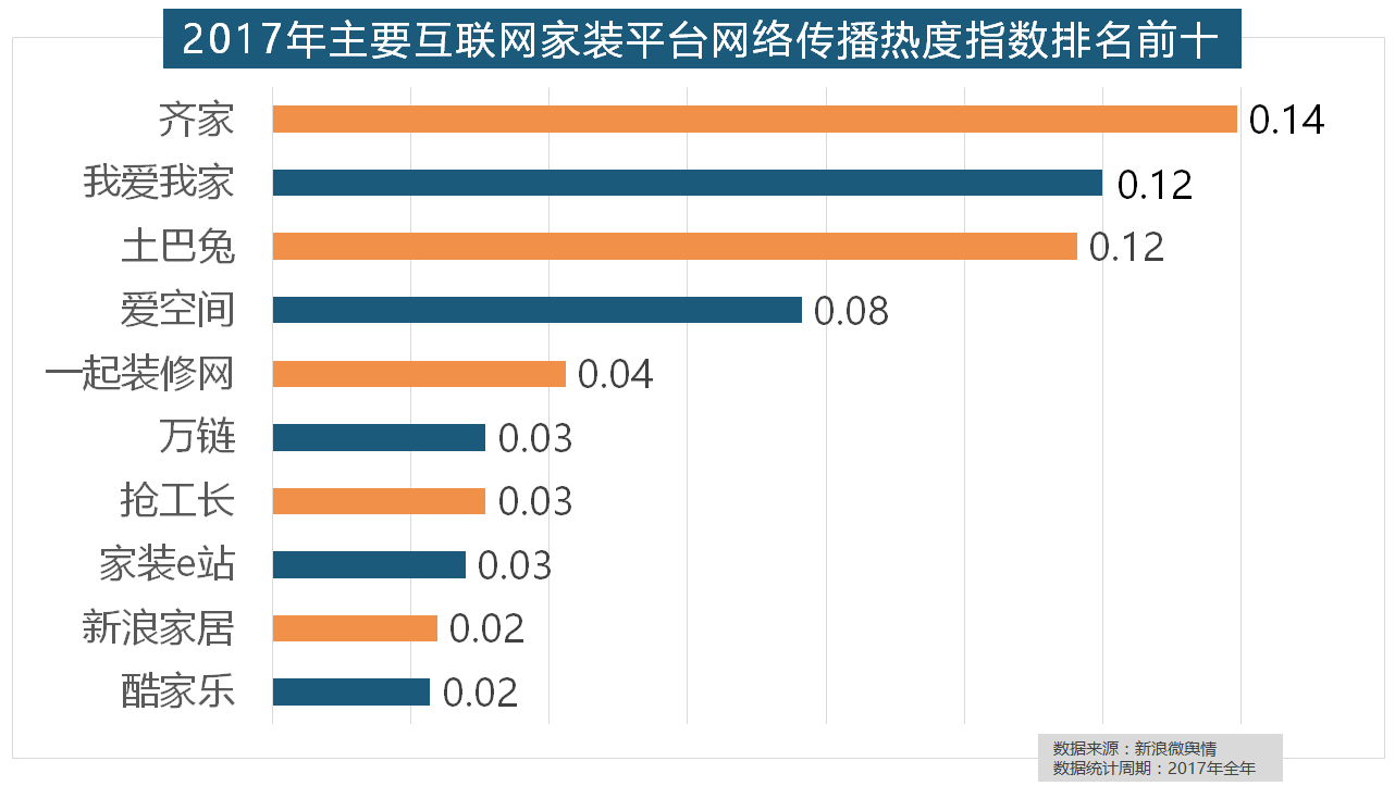 2017年,索菲亚橱柜、金牌橱柜、尚品宅配、志邦橱柜位列二到五位。齐家、我爱我家、土巴兔、爱空间、一路拆修网的收集热度指数排名前五,但正在2017年所受关心无限,2017年,虽然近年来浩繁互联网家拆平台纷纷兴起,2017年家拆行业热度不减,